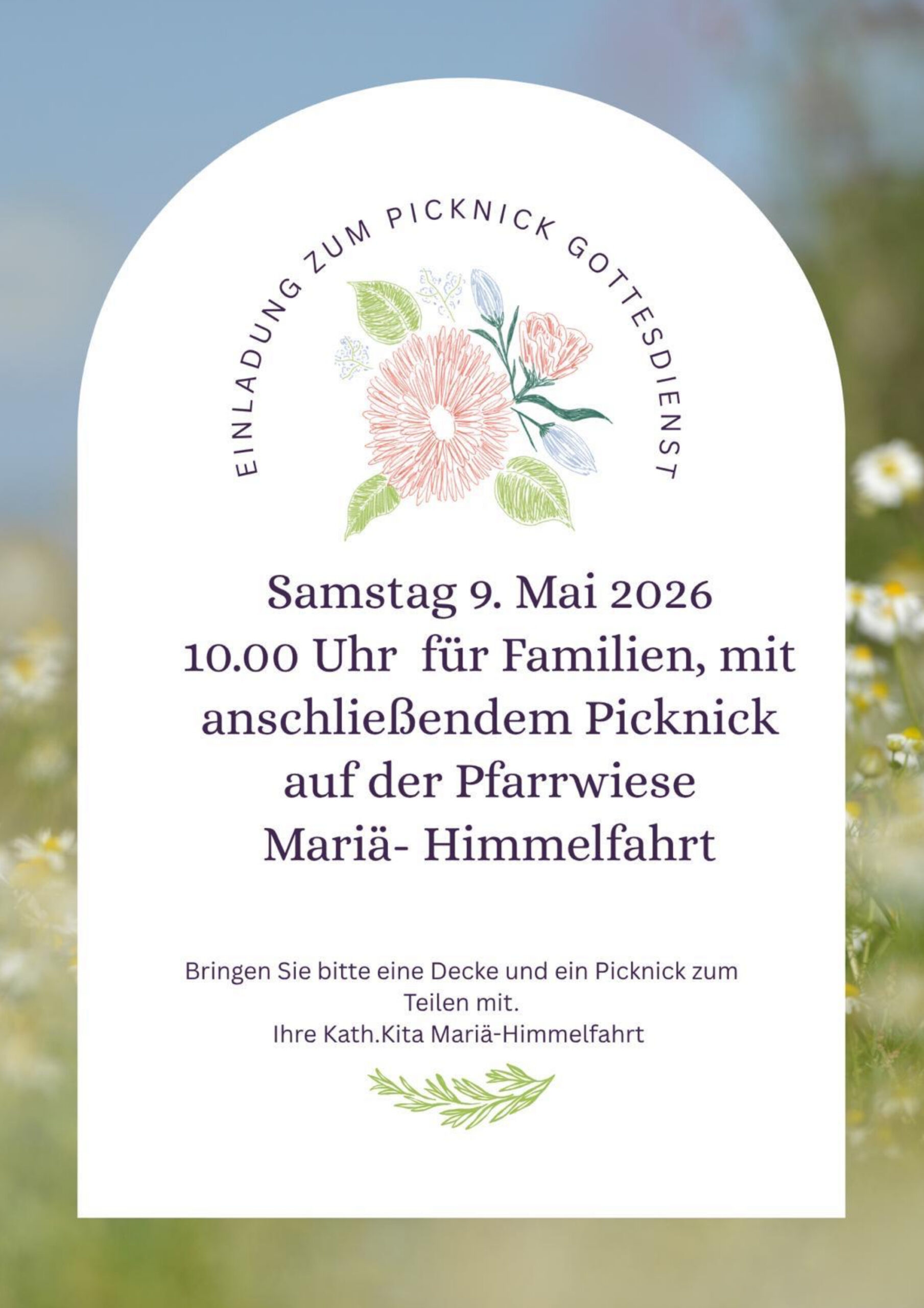 Hier können gern alle Großen und Kleinen kommen. Der Gottesdienst findet bei gutem Wetter auf der Pfarrwiese am Außenaltar statt. Alle Familien werden auf Ihrer mitgebrachten Decke sitzen, um unsere Picknickatmosphäre für den Gottesdienst zu unterstützen.